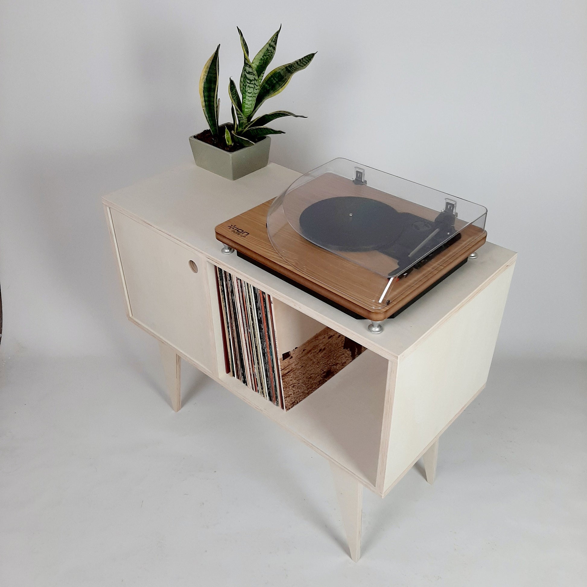 Our stylish, minimalist side board/media table is designed to hold vinyl records but is also perfect as a living room sideboard, media console or even drinks cabinet. With clean lines it is inspired by mid century Danish minimalist furniture but with a unique modern twist. The legs are handmade to a sleek, modern design.